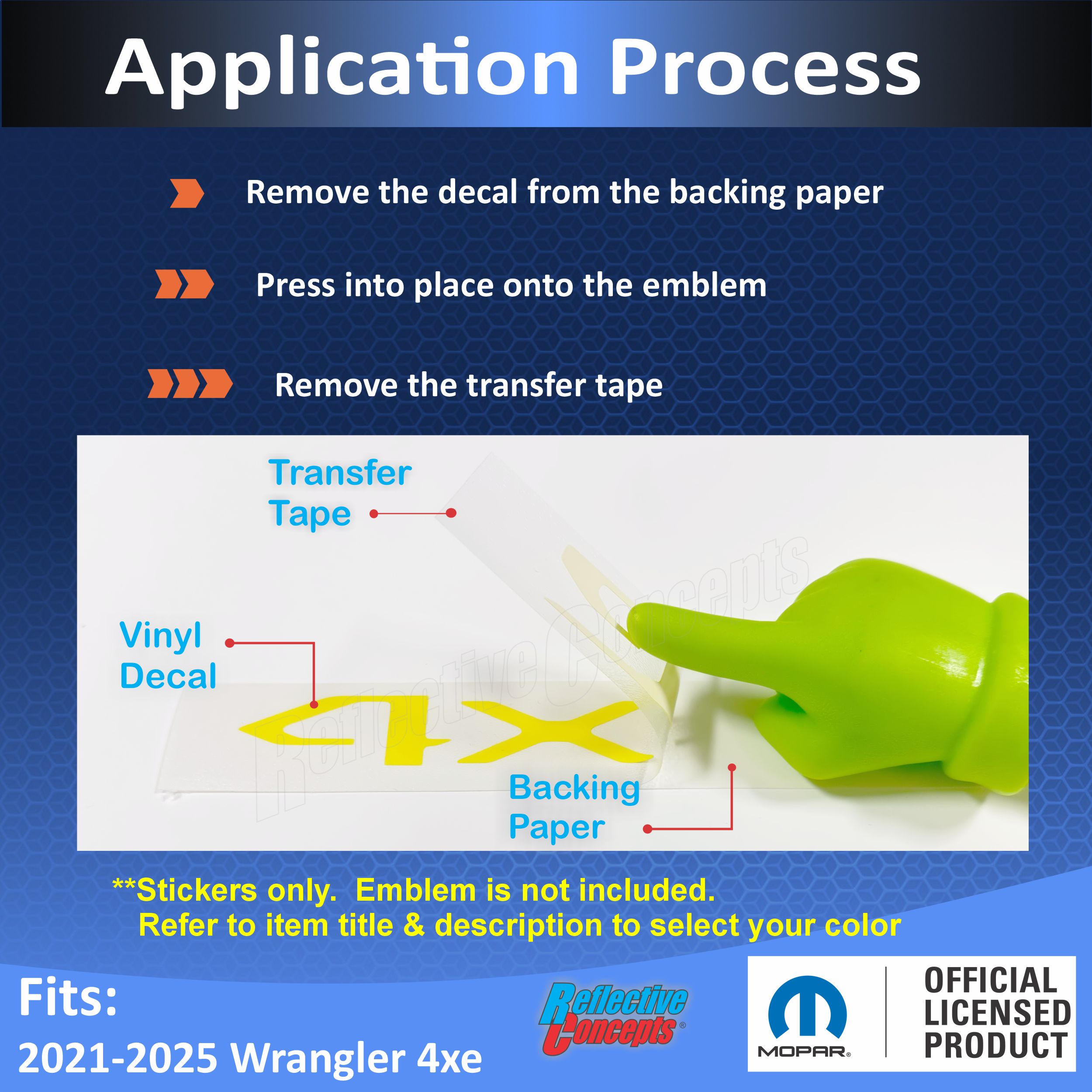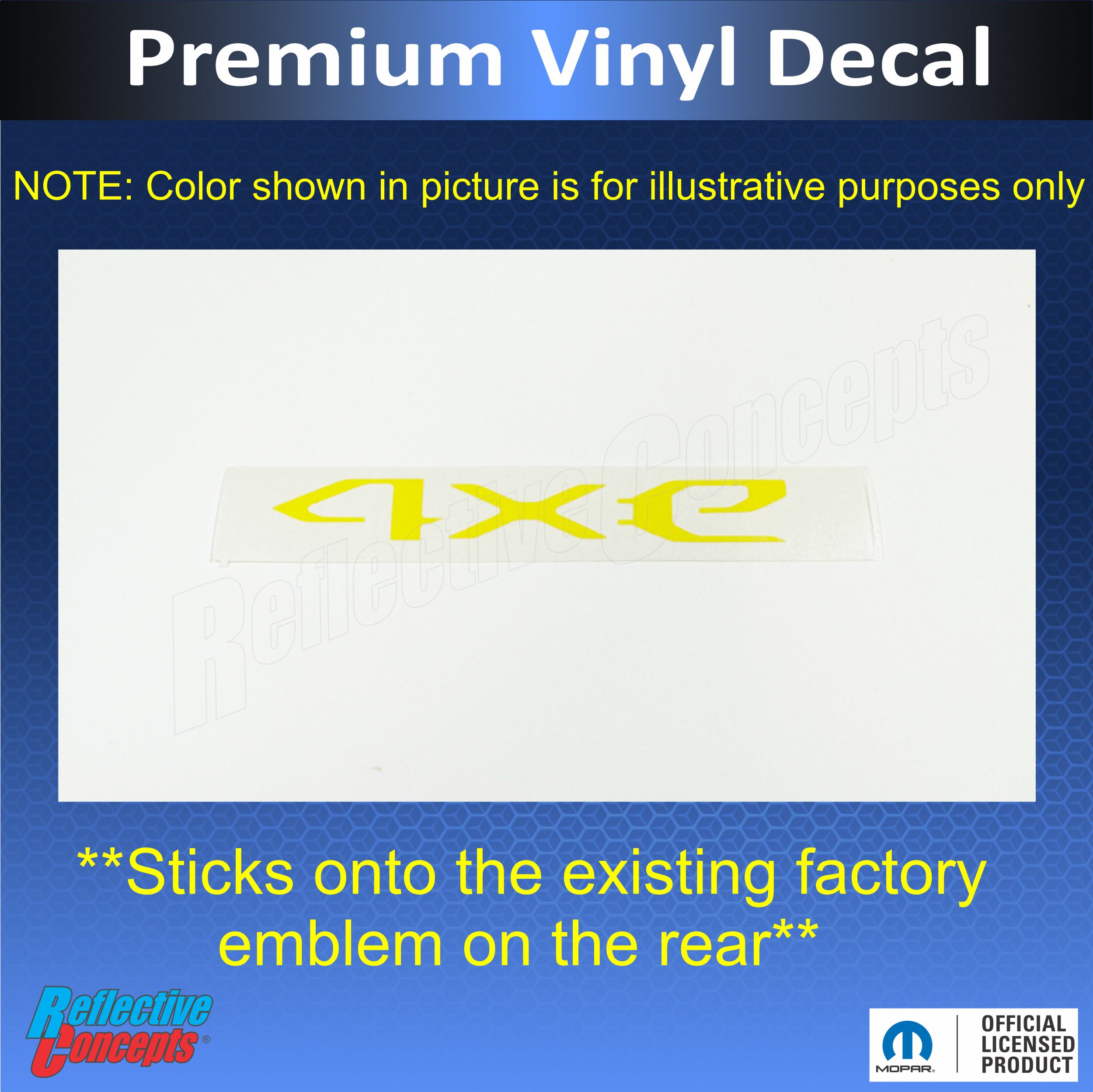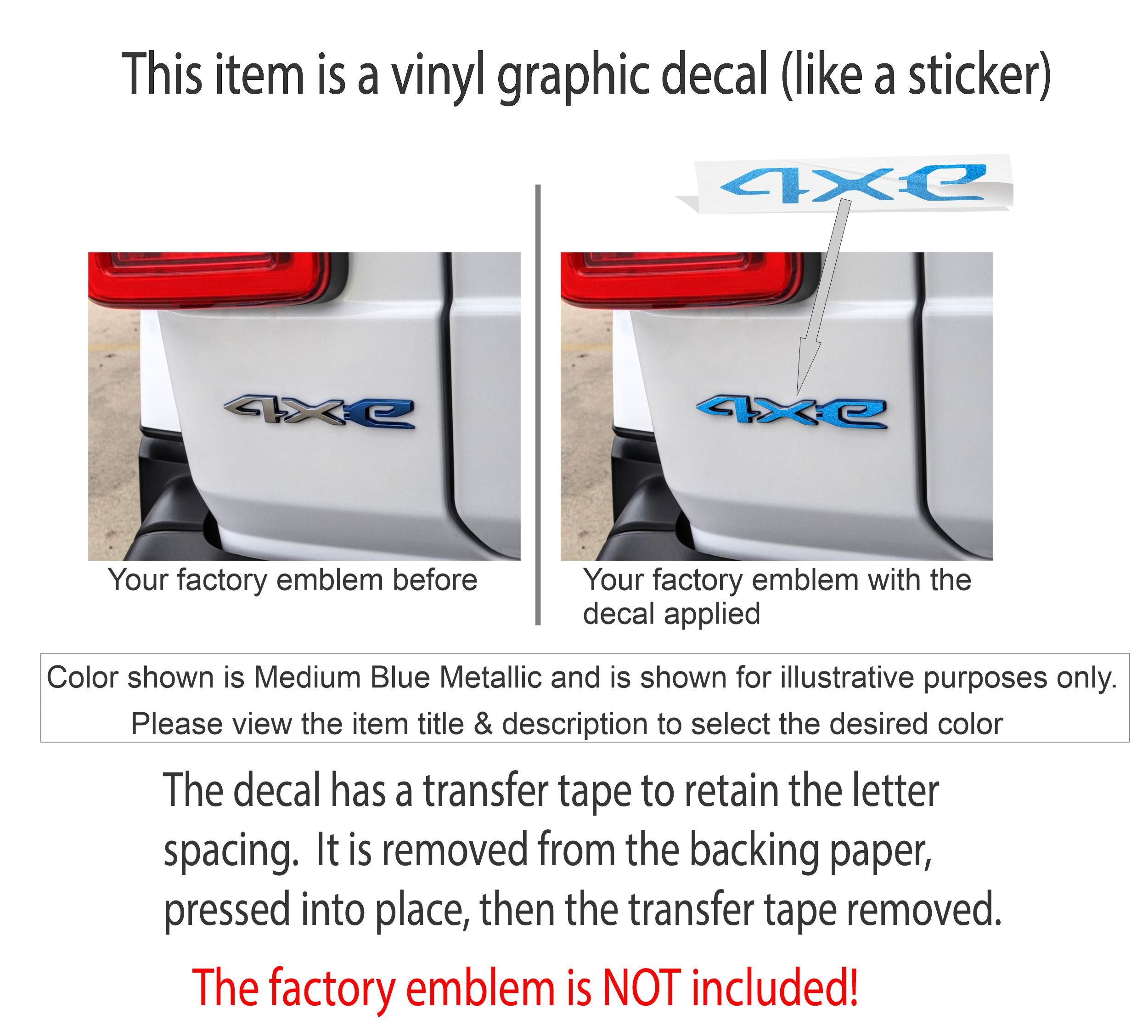 • Vinyl overlay sized to stick onto the face of the "4xe" lettering on the rear liftgate emblem