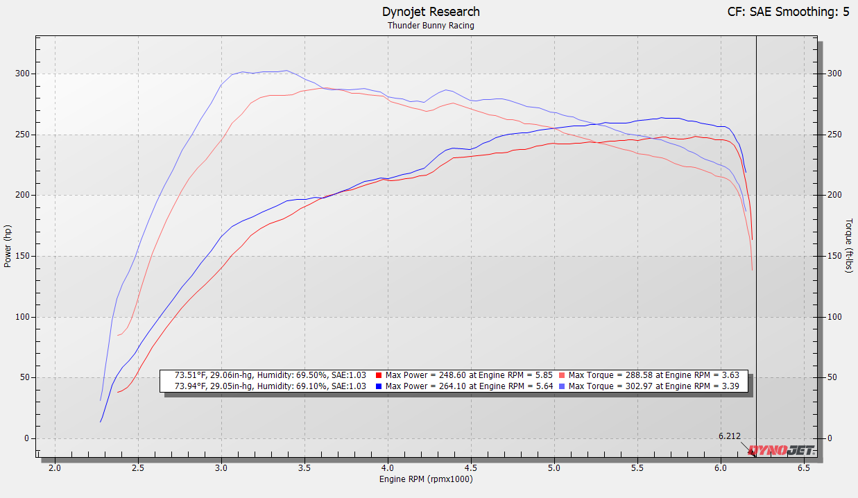 The intercooler delivers proven performance with dyno results showing gains of up to 15.5 hp and 14.4 lb-ft of torque over stock. Peak output increased to 264.10 hp and 302.97 lb-ft, with improved response and efficiency across the entire RPM range. This is real, repeatable power you can feel on and off the road.