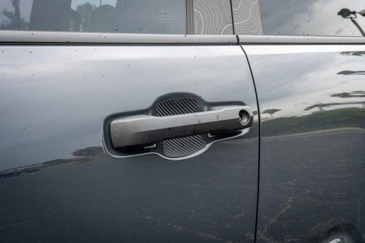 A common place for light scratches is directly behind the door handles. We knew this spot was a good location for some vinyl and have been getting some requests for it. Here is our solution. An easy install product by design that can also be an accent when you choose a contrasting color vs clear PPF.