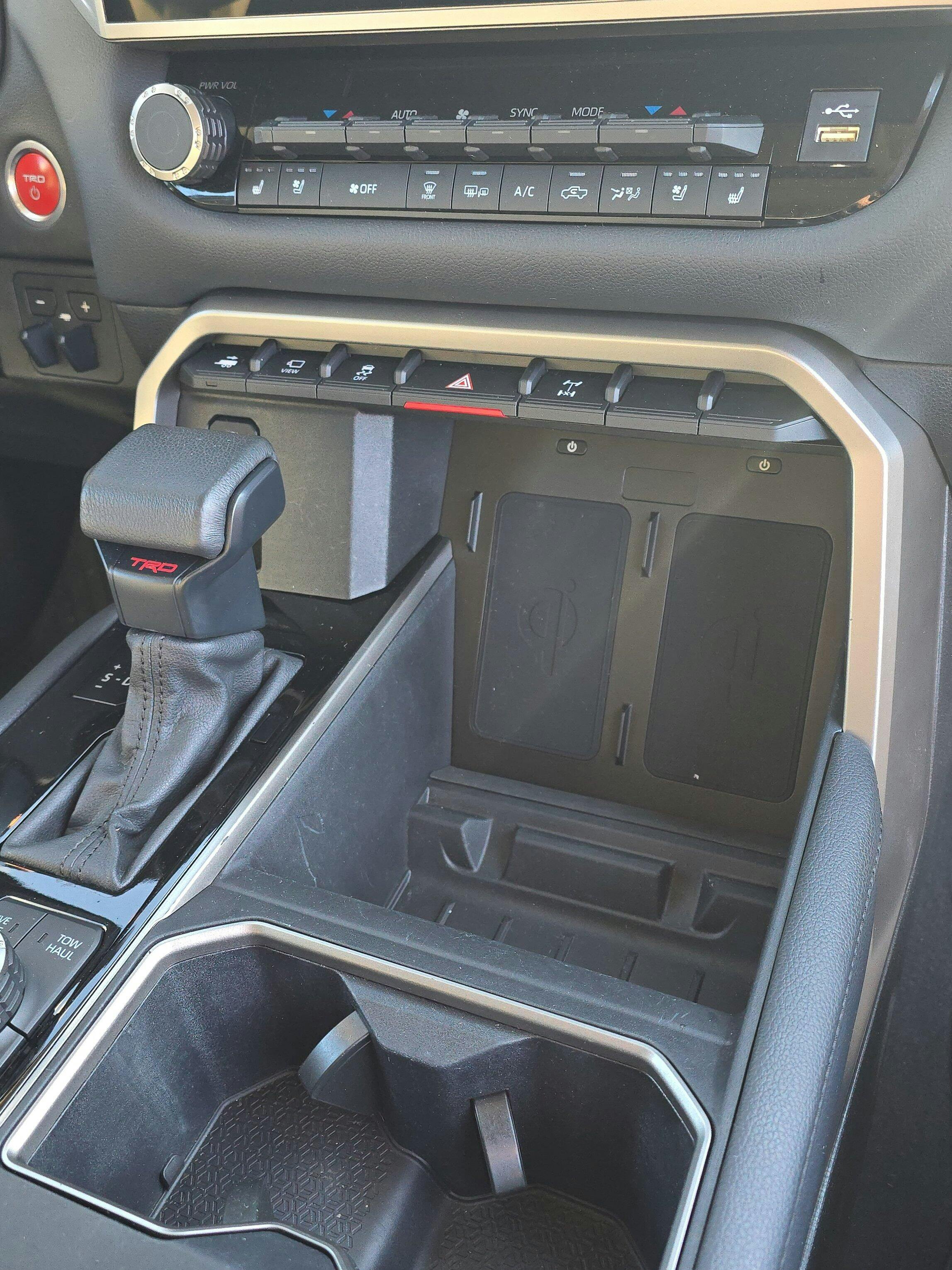 Dual Wireless 10 Watt Qi Phone Charger exclusively Made for the 2022+ Toyota Tundra and 2023+ Toyota Sequoia.